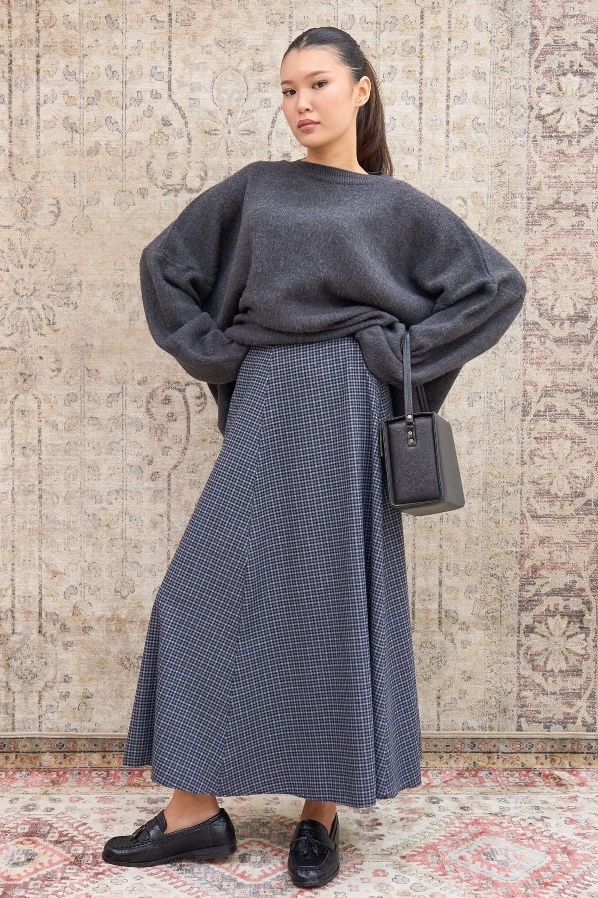 Mavi Minik Kareli Dört Parçalı Ekose Pamuklu Balon Etek