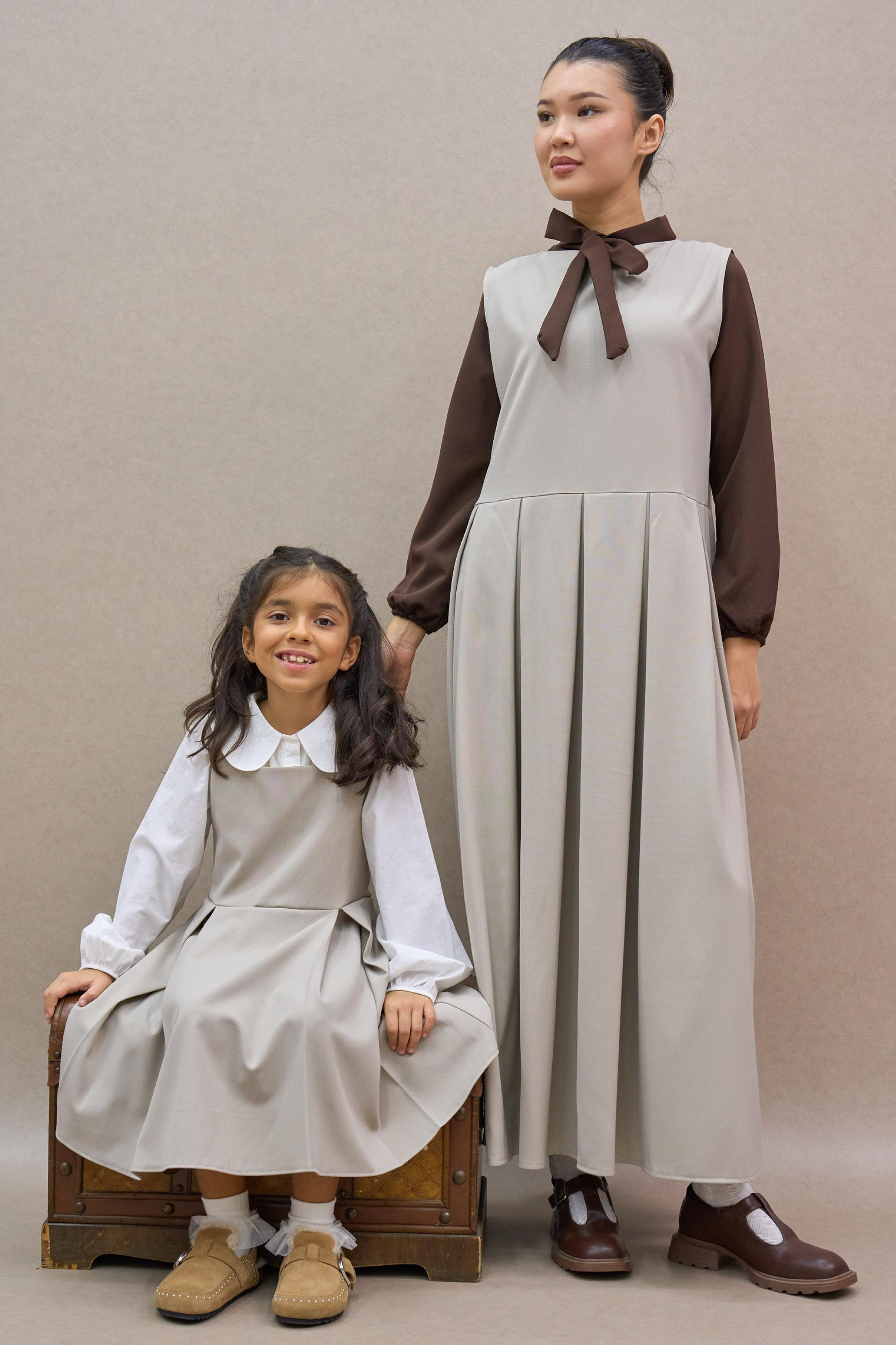 Bej Pileli Poliviskon Jile Elbise ve Kız Çocuk Jile Elbise Anne-Kız Kombini (TEKLİ SATILMAKTADIR)