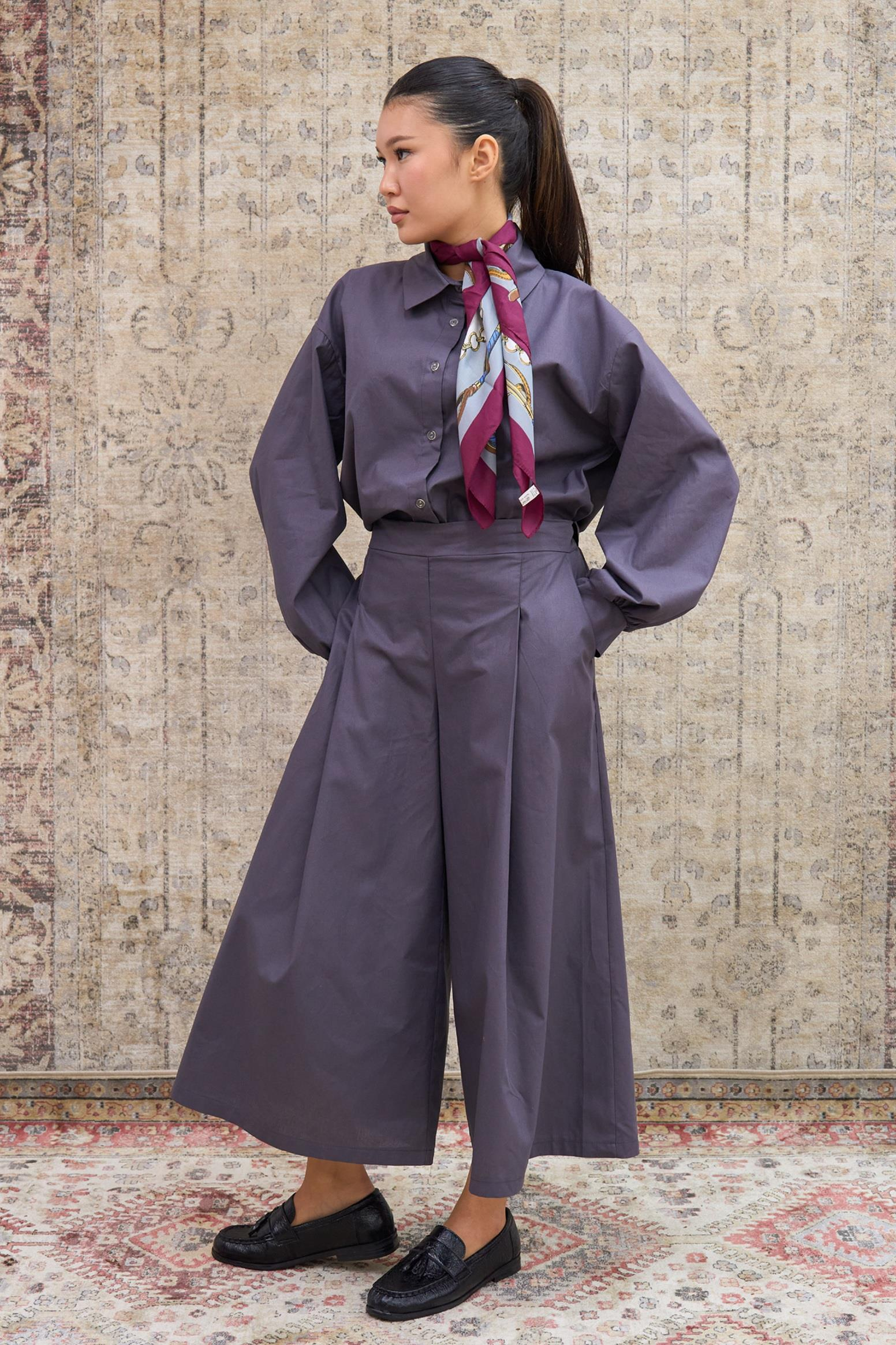 Gri Poplin Gömlek ve Pileli Poplin Pantolon İkili Takım