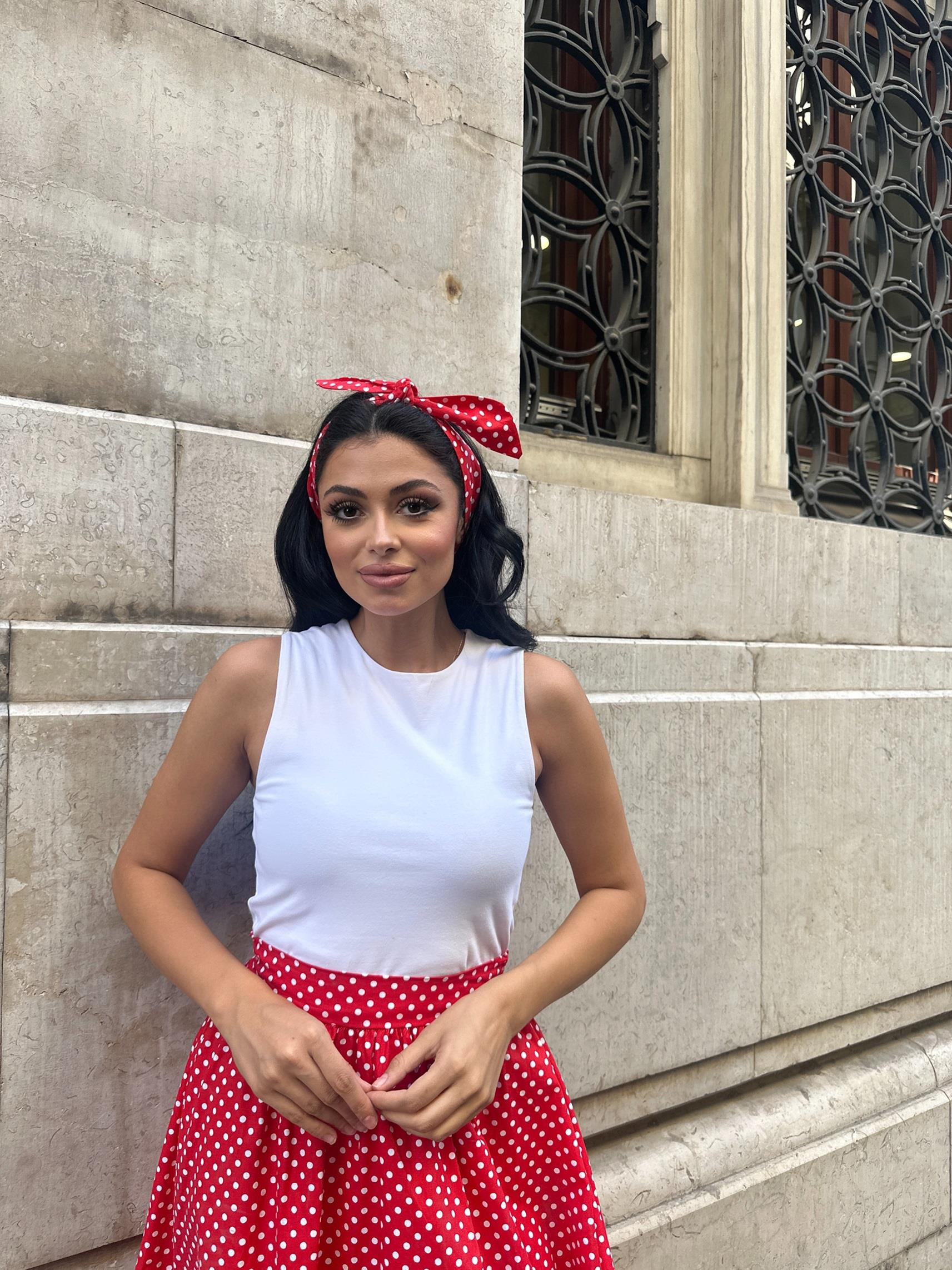 Kırmızı Puantiyeli Bağlama Detaylı Poplin Bandana
