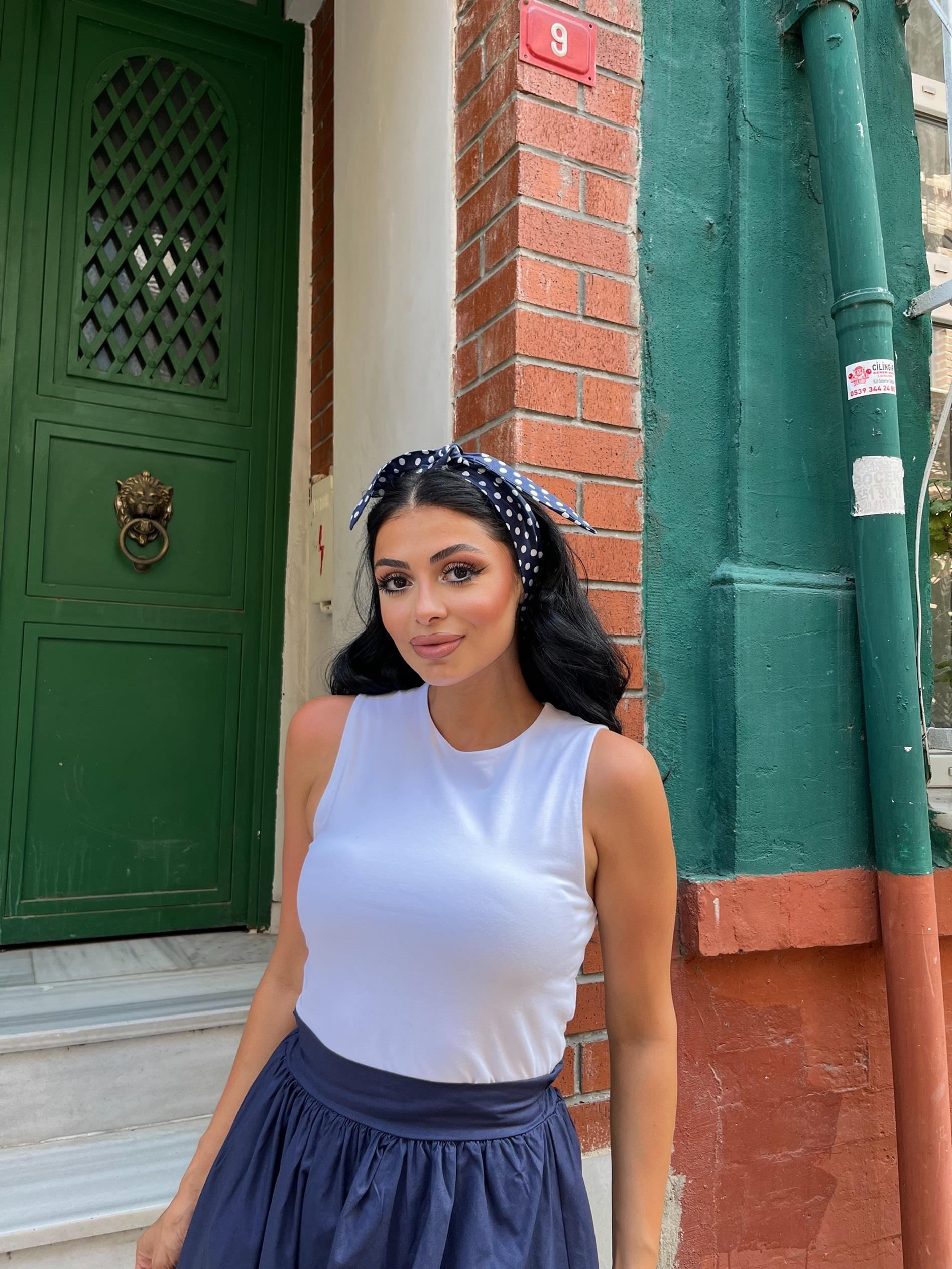 Lacivert Puantiyeli Bağlama Detaylı Poplin Bandana
