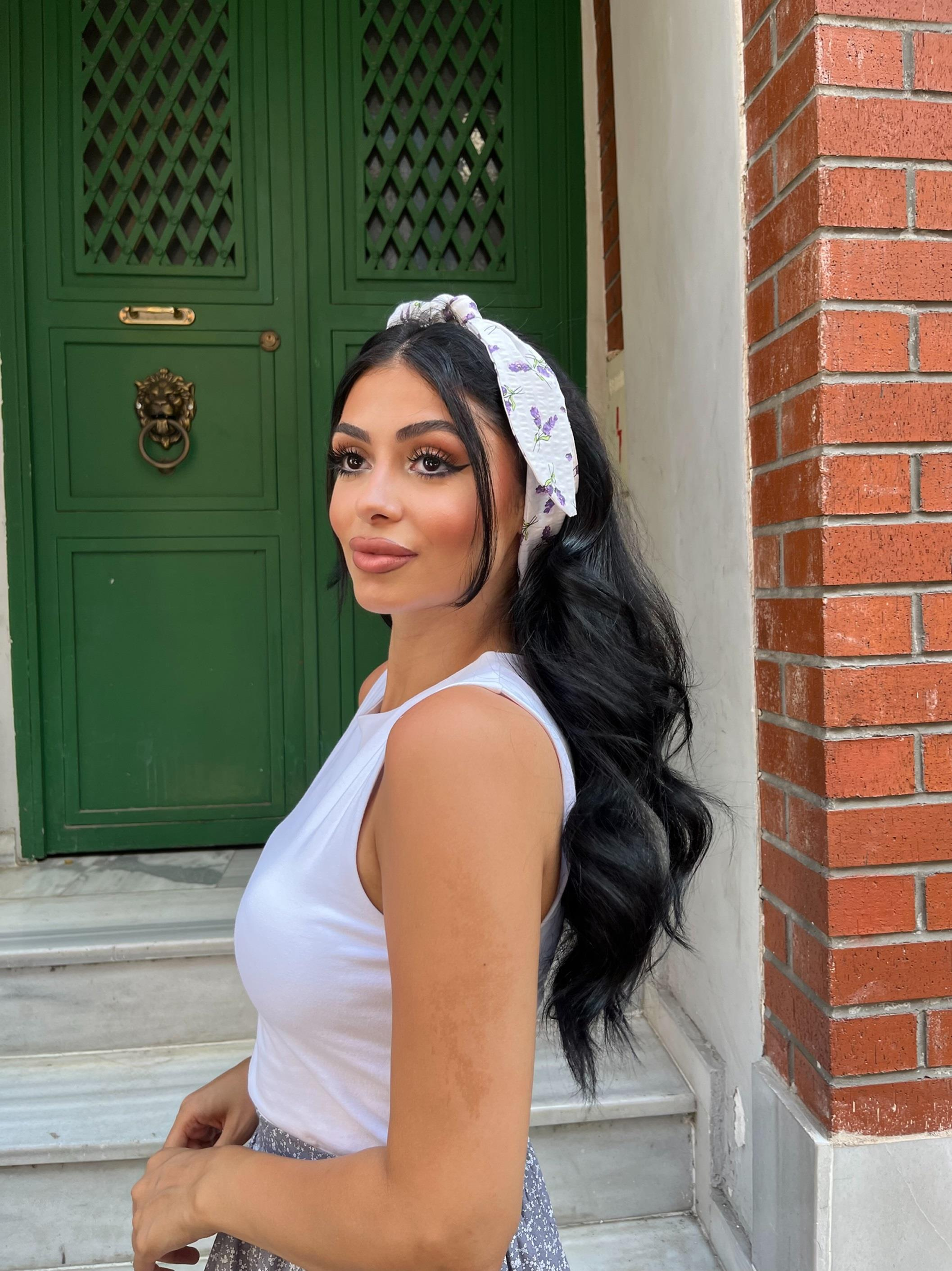 Lavanta Desenli Bağlama Detaylı Poplin Bandana