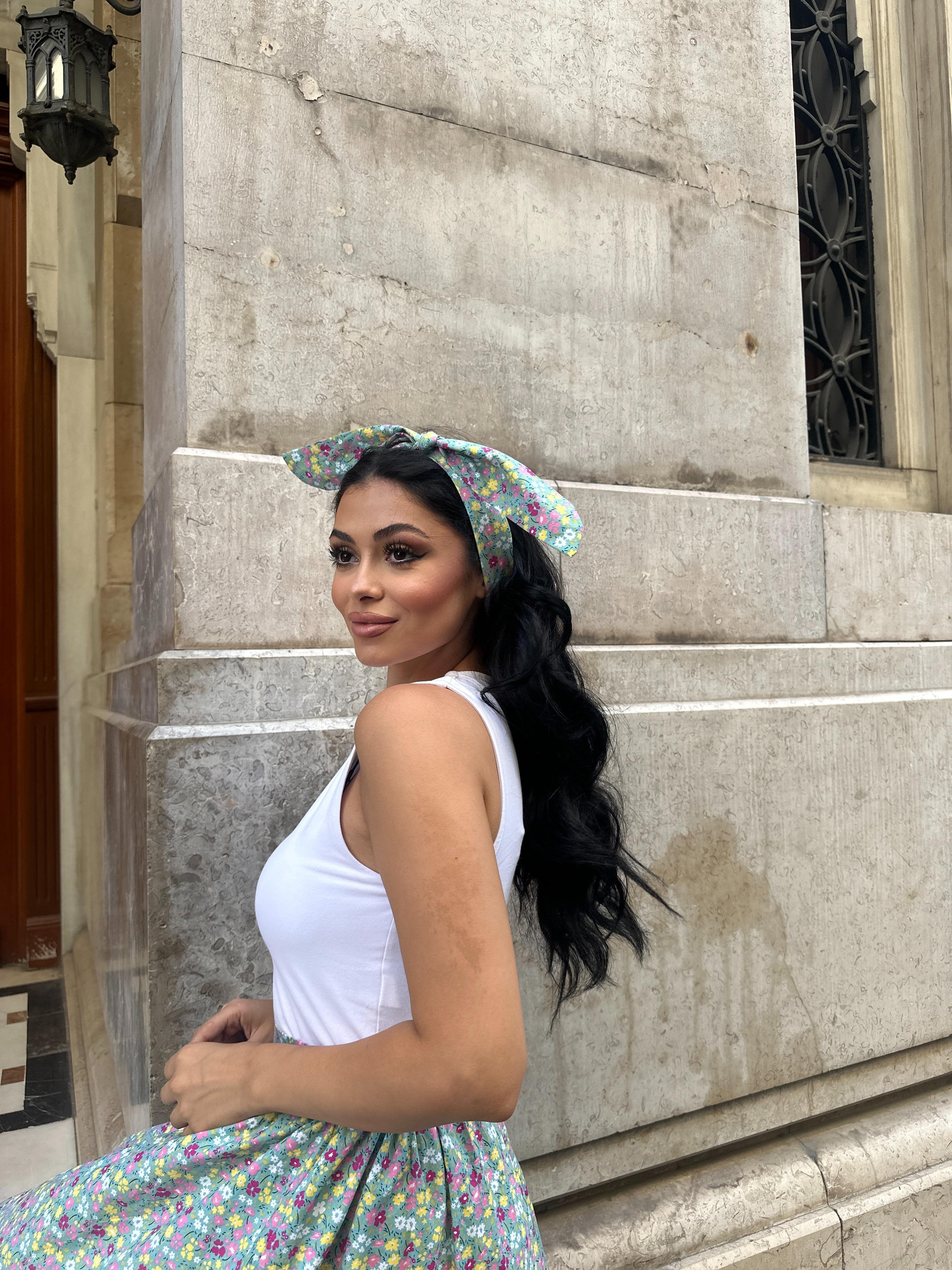 Mint Yeşili Çiçekli Bağlama Detaylı Poplin Bandana