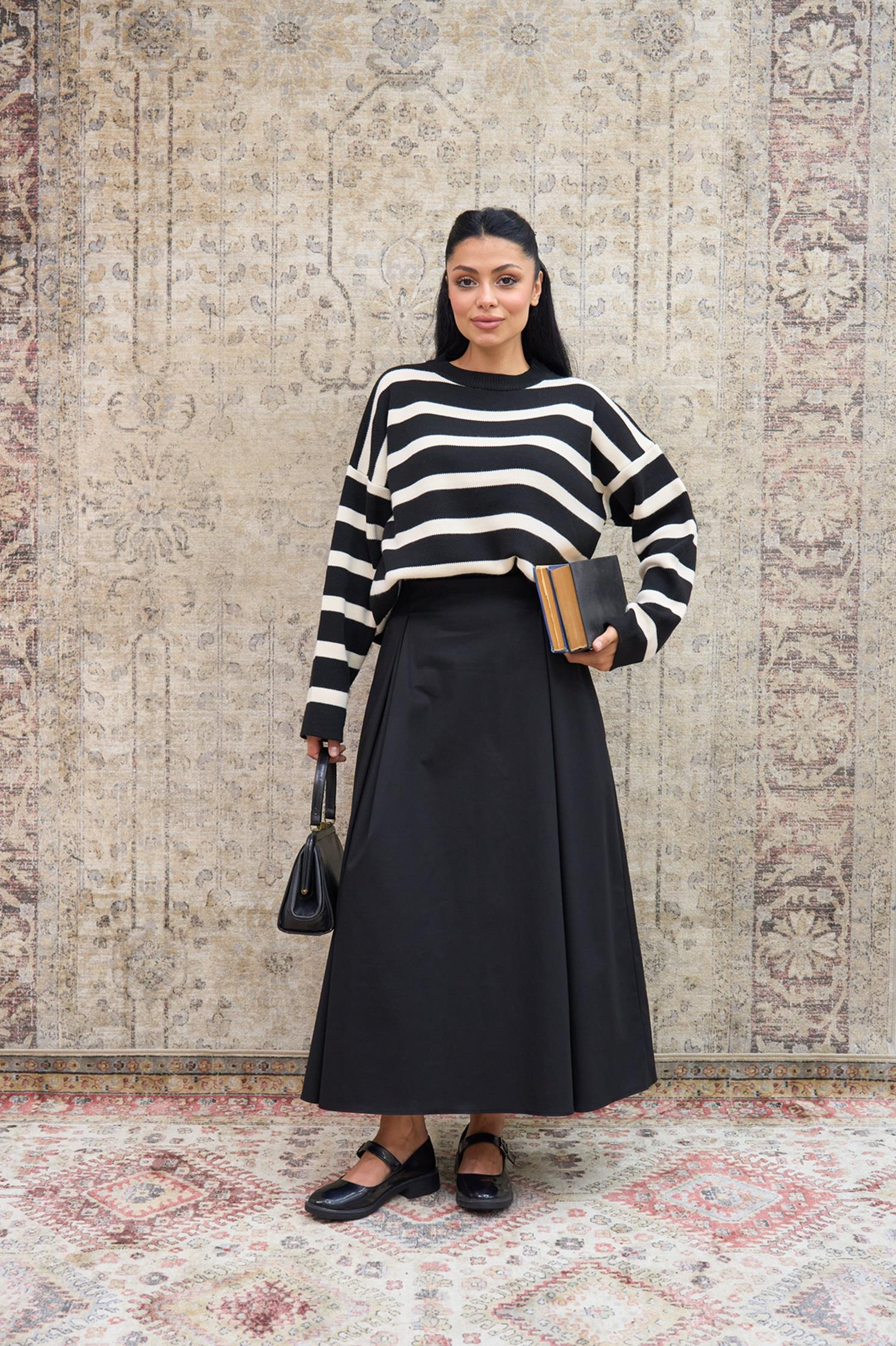 - Kumaş Türü: Gabardin Kumaş (%97 Pamuk, %3 Likra ); ÜRÜN BOYU: 95 cm civarındadır ; -Bir adet etekten oluşmaktadır.; KADIN ETEK BEDEN TABLOSU ; (S/M - BEDEN -GÖĞÜS:90, BEL:74, BASEN:98) ; (L/XL - BEDEN-GÖĞÜS:99, BEL:83, BASEN:107; - Orta kalınlıkta kumaşı ile mevsim geçişlerinde ideal bir kullanım sunar.; - Klasik kesimiyle her ortama uyum sağlar ve şıklığınızı tamamlar.; - Pamuk materyali sayesinde nefes alabilir yapıda olup, gün boyu konforlu bir deneyim sunar.; - Düz tasarımıyla sade ve zamansız bir görünüm elde edilir.; - Kemersiz tasarımı ile rahat bir kullanım sağlar ve farklı kemerlerle kombin yapma özgürlüğü tanır.; - İç göstermeyen yapısı sayesinde rahatlıkla giyilebilir ve şeffaflık endişesi ortadan kalkar.; - Astarsız olması, eteğin hafifliğini artırarak hareket özgürlüğünüzü destekler.; - Pileli silueti ile feminen ve zarif bir duruş sergiler.; - Tüm sezonlar için uygun olan bu etek, gardırobunuzdaki çok yönlülüğü artırır.; - Düz deseniyle kolayca kombinlenebilir ve her tür üst giyimle uyum sağlar.; - Design koleksiyonuna ait bu etek, modern ve trend bir stil sunar.; - Yarım pat fermuar kapaması pratik kullanım sağlarken, düzgün ve şık bir kapanış imkanı verir.