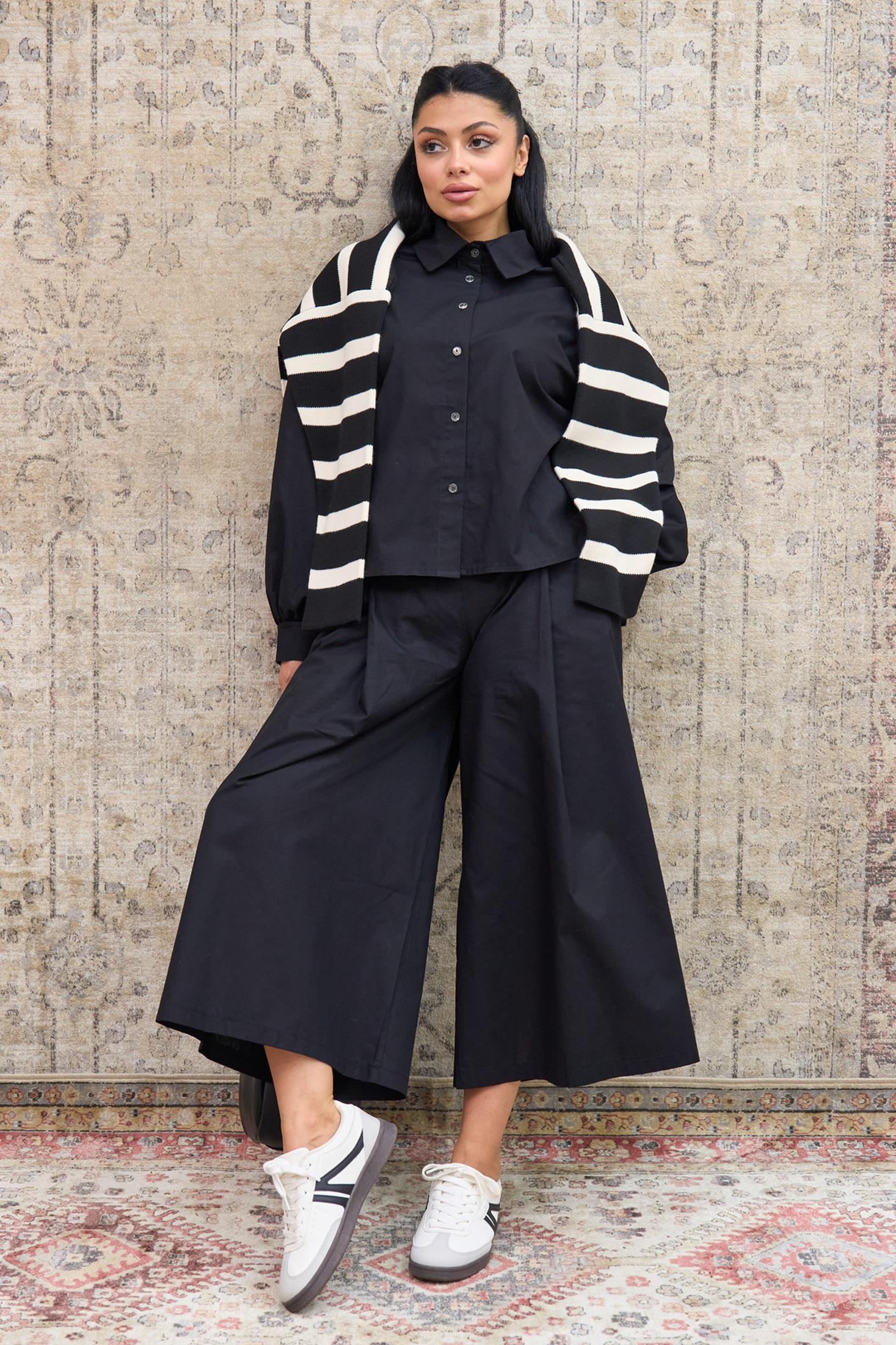 Siyah Poplin Gömlek ve Pileli Poplin Pantolon İkili Takım
