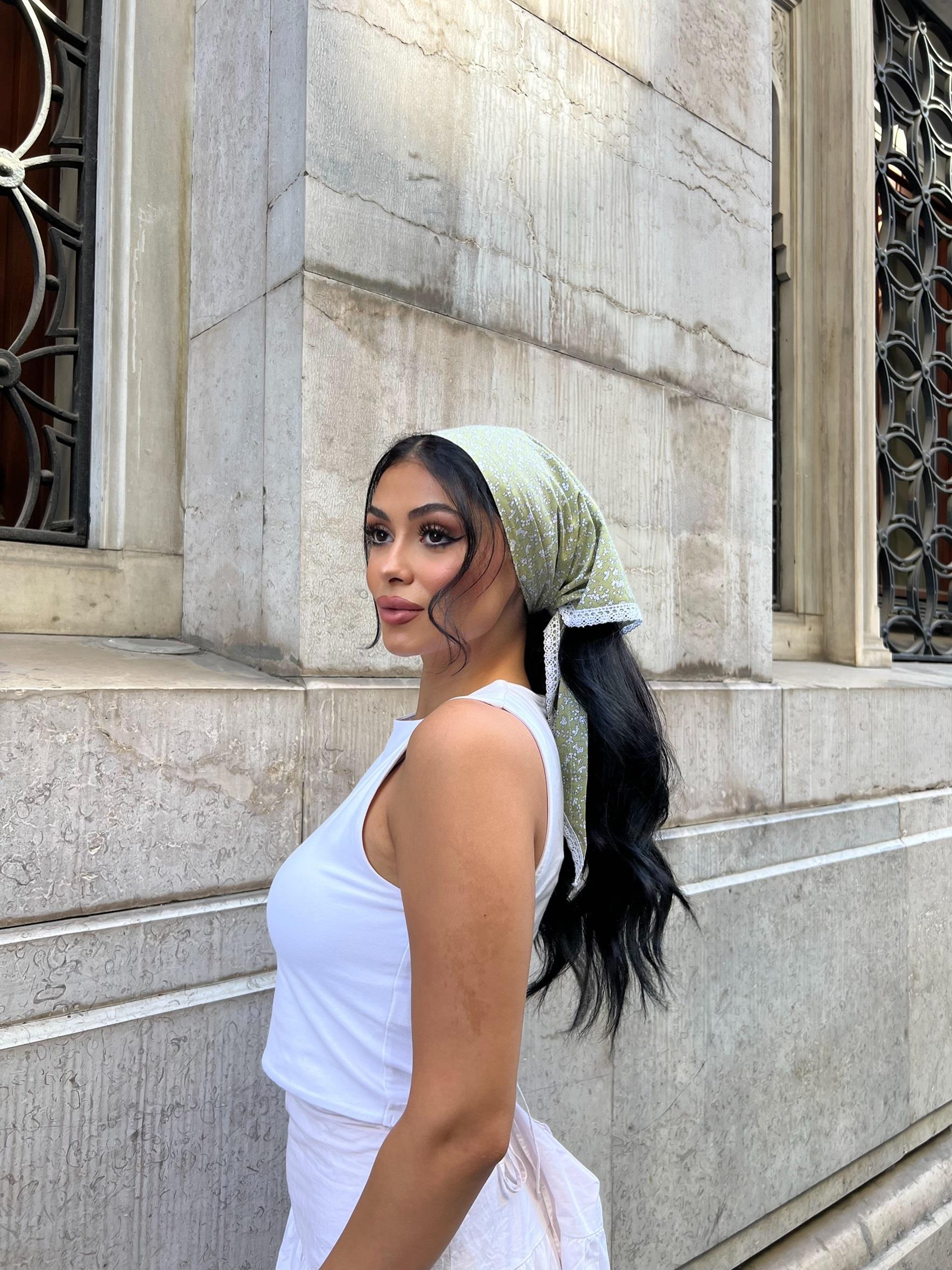Yeşil Çıtır Poplin Dantel Detaylı Bandana